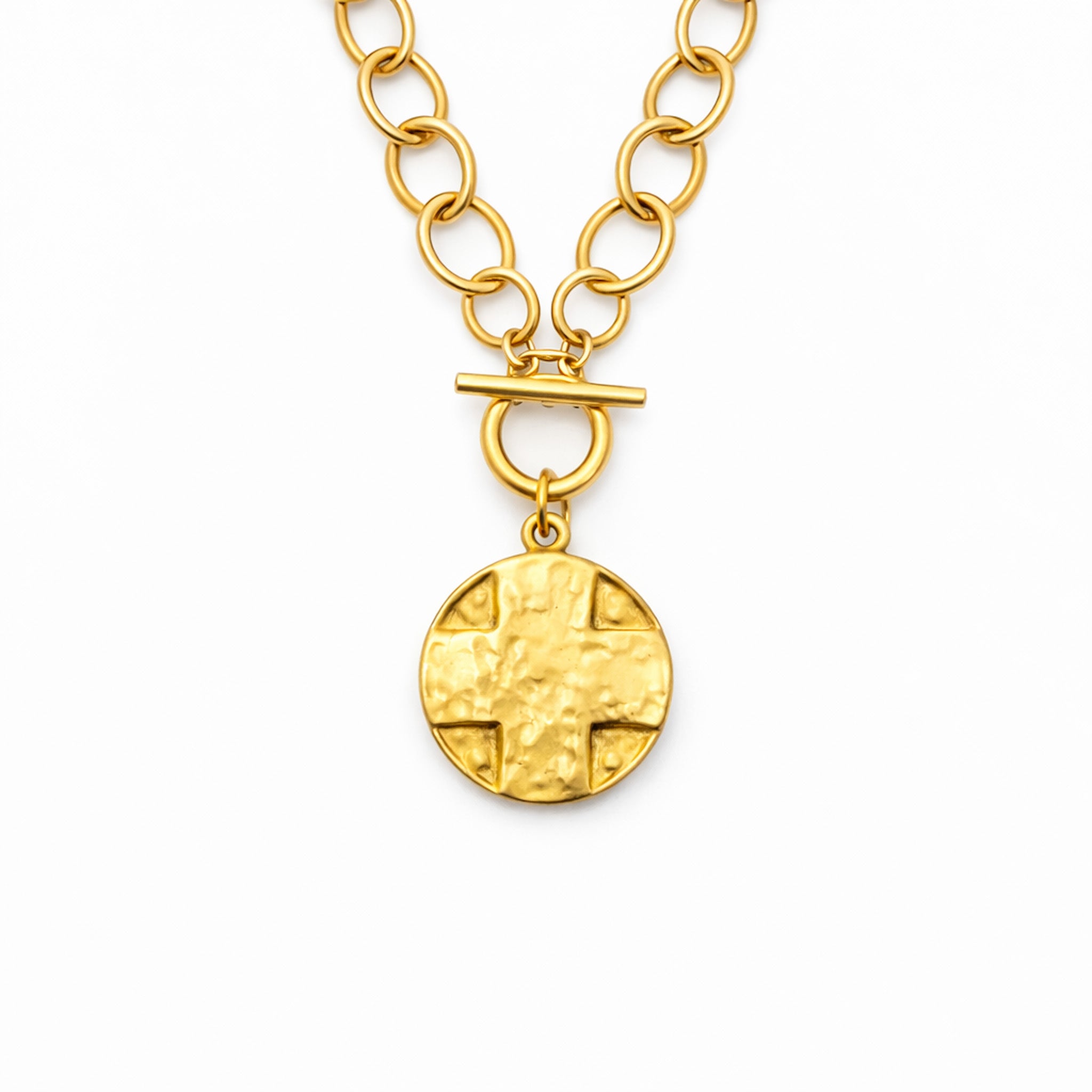 Heirloom Circle Loop Necklace with Matte Gold Lord's Prayer